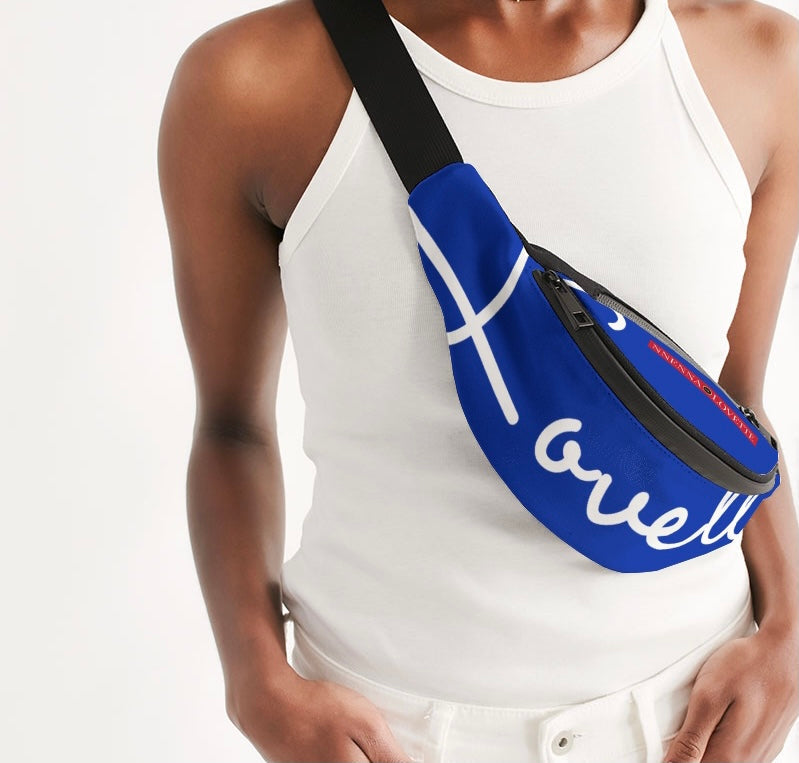The Nnenna Lovette Sling Bag was designed to keep your essentials in order. The Lovette Scripted Sling Bag can be worn over the shoulder or around the waist for easy access. With two zip compartments, an adjustable belt and a buckle closure.