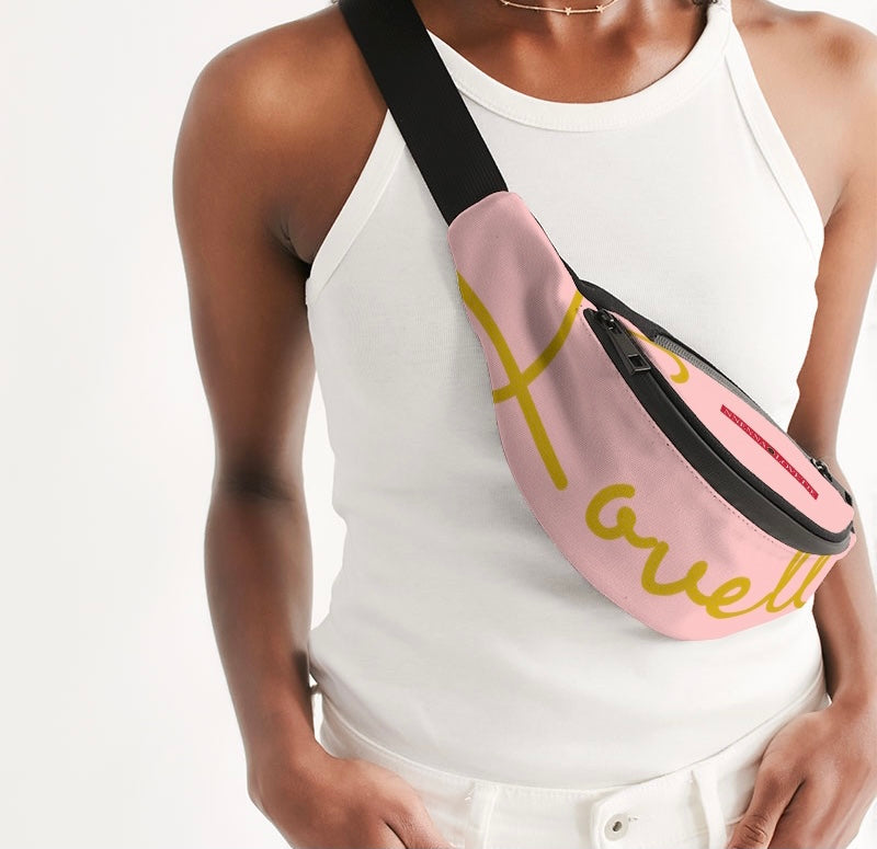 The Nnenna Lovette Sling Bag was designed to keep your essentials in order. The Lovette Scripted Sling Bag can be worn over the shoulder or around the waist for easy access. With two zip compartments, an adjustable belt and a buckle closure.