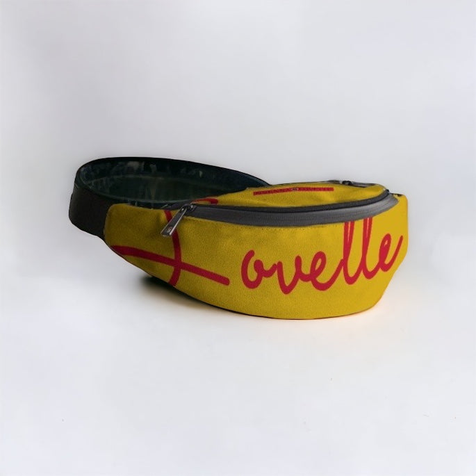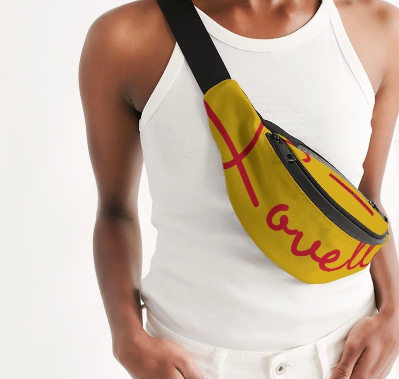 The Nnenna Lovette Sling Bag was designed to keep your essentials in order. The Lovette Scripted Sling Bag can be worn over the shoulder or around the waist for easy access. With two zip compartments, an adjustable belt and a buckle closure.